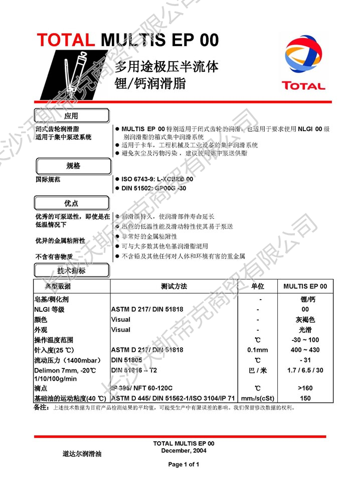 道達(dá)爾Multis EP00鋰/鈣基潤(rùn)滑脂  詳細(xì)說明