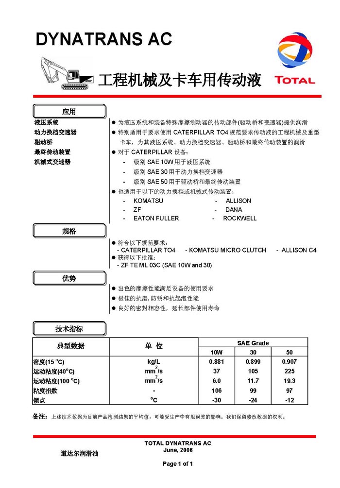 道達(dá)爾Dynatrans AC車用傳動(dòng)液  詳細(xì)說明