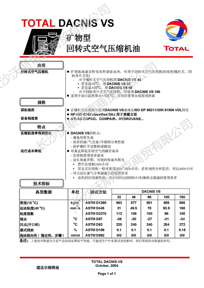 道達(dá)爾Dacnis VS空壓機(jī)油  詳細(xì)說明
