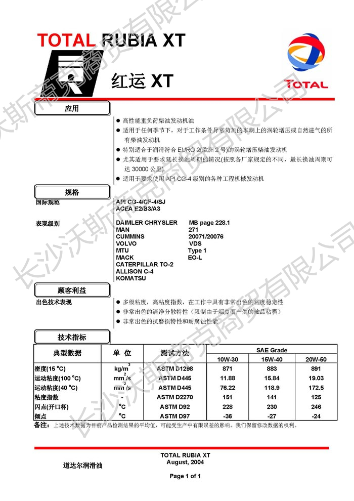道達(dá)爾紅運(yùn)XT工業(yè)發(fā)動(dòng)機(jī)油 詳細(xì)說明