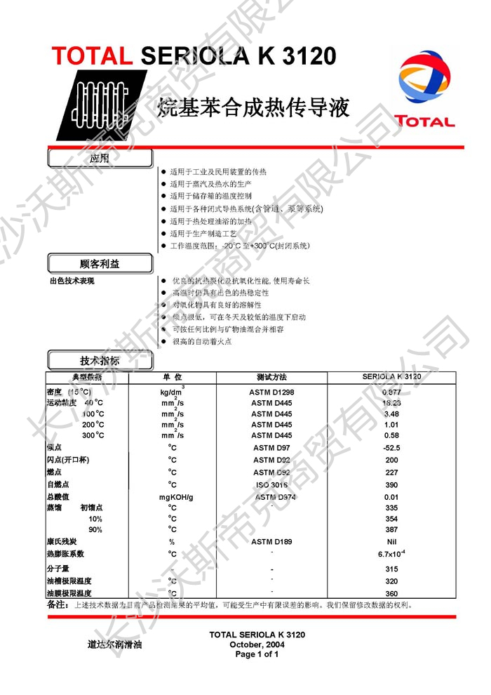 道達(dá)爾Seriola K 3120合成熱傳導(dǎo)液  詳細(xì)說明