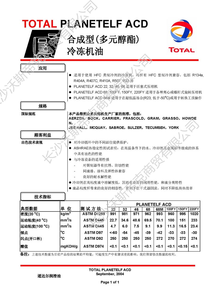 道達爾Planetelf ACD冷凍機油  詳細說明