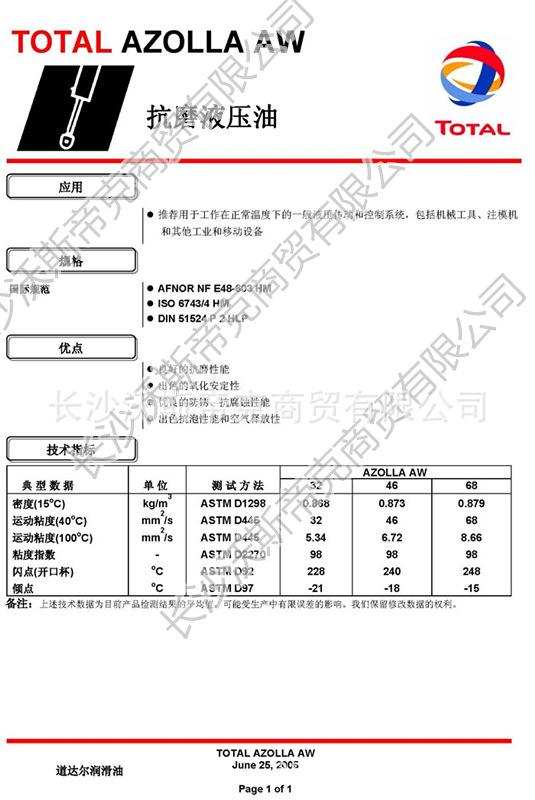 道達(dá)爾Azolla AW抗磨液壓油 詳細(xì)說明