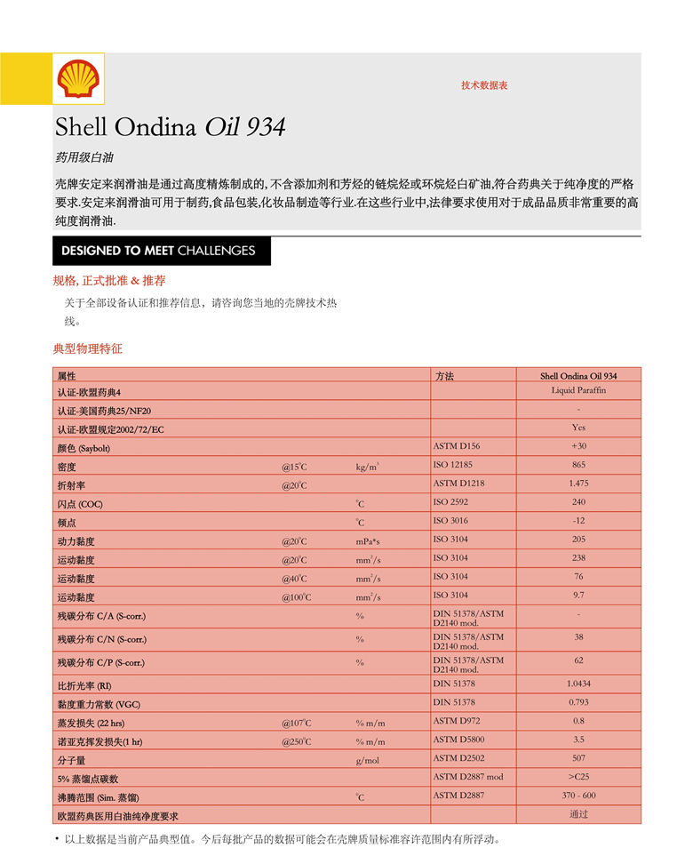 殼牌安定來934白礦油 詳細(xì)說明