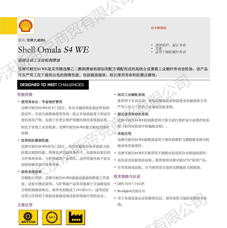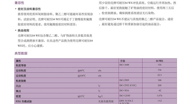殼牌可耐壓S4 WE齒輪油 詳細說明