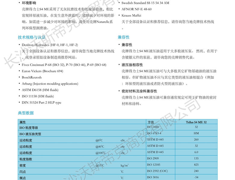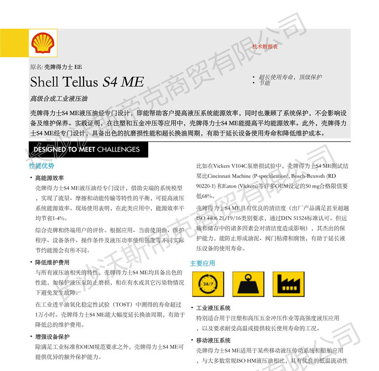 殼牌得力士S4 ME液壓油 詳細說明