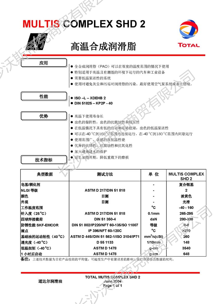道達爾Multis Complex SHD2潤滑脂  詳細說明