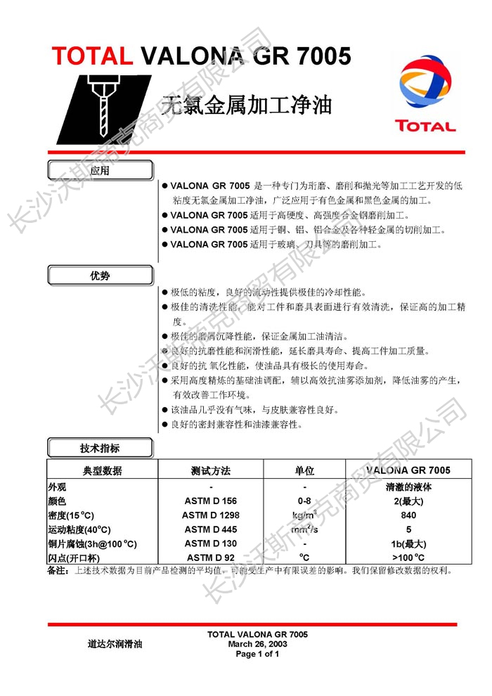 道達爾Valona GR7005加工凈油  詳細說明