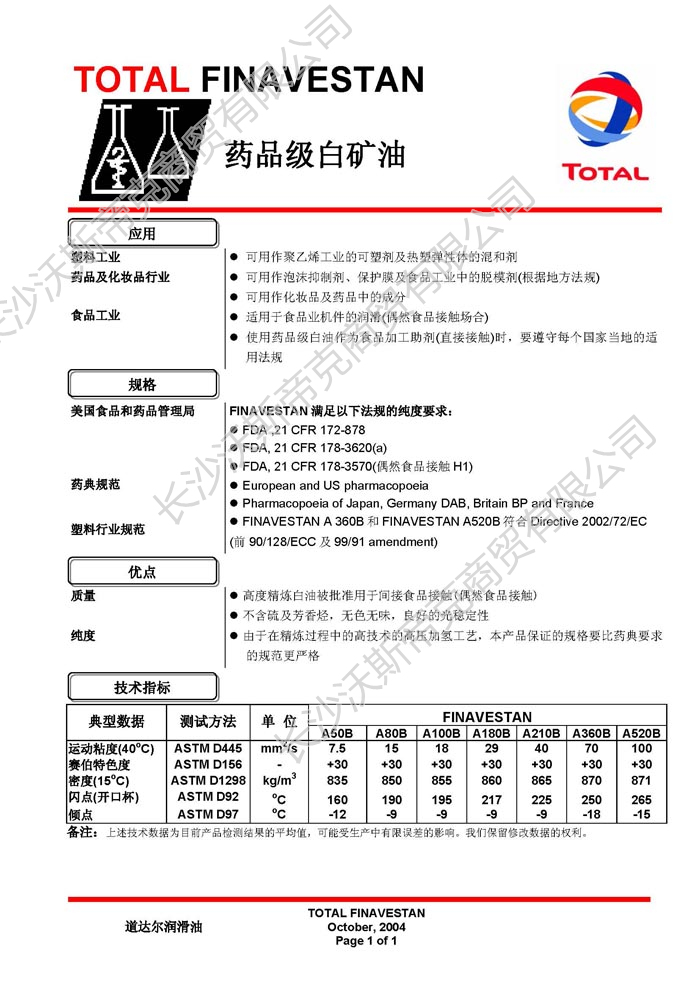 道達(dá)爾Finavestan藥品級(jí)白礦油  詳細(xì)說(shuō)明