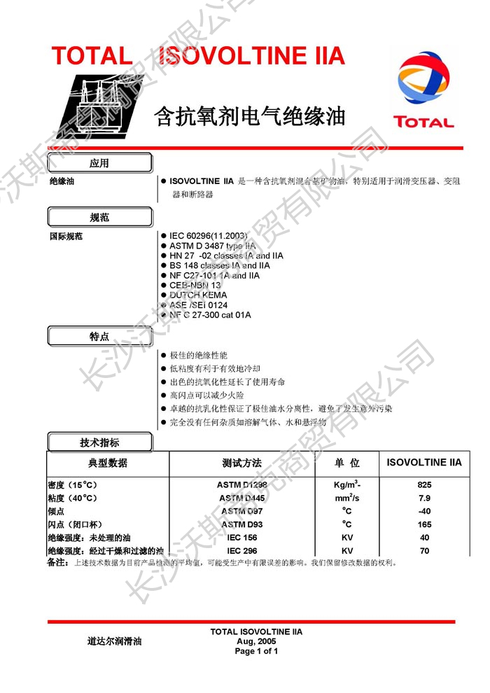 道達(dá)爾Isovoltine IIA電氣絕緣油  詳細(xì)說明
