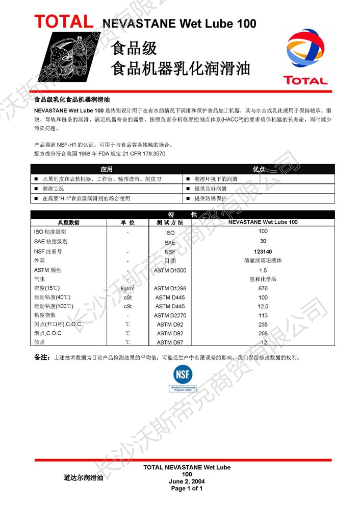 道達爾Nevastane Wet lube 100潤滑油  詳細說明