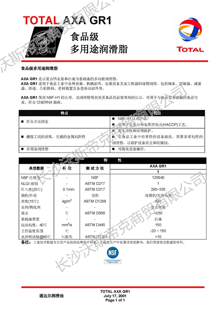 道達(dá)爾AXA GR1多用途潤滑脂  詳細(xì)說明