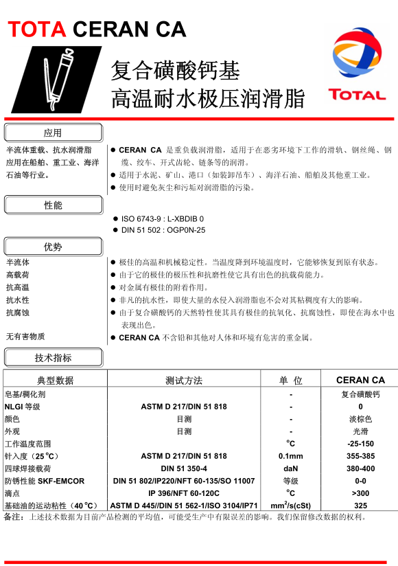 道達(dá)爾Ceran CA潤(rùn)滑脂 詳細(xì)說(shuō)明
