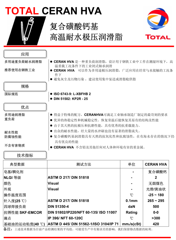 道達爾Ceran HVA潤滑脂 詳細說明