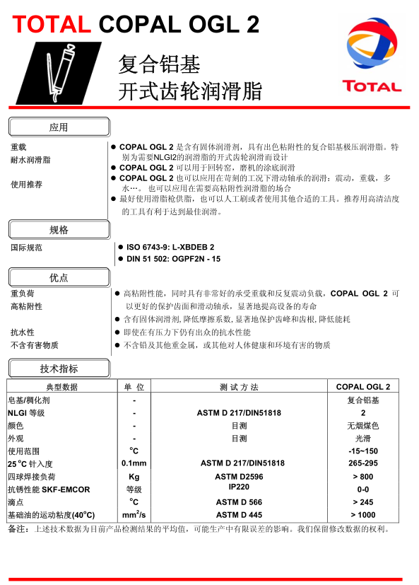 道達(dá)爾COPAL OGL2開(kāi)式齒輪潤(rùn)滑脂 詳細(xì)說(shuō)明